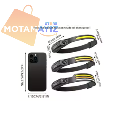 كاين مصباح خفيف بزاف، يركّب فالرّاس، يخدم بـ بطارية مدمجة قابلة للشحن USB، وزيد فيه حسّاسات الحركة يعني غير دير يدّك قدّامو يشعل ويطفي بلا ما تلمسو.