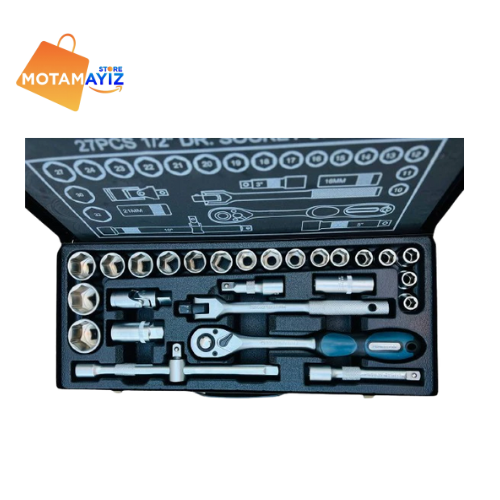 هي علبة أدوات احترافية فيها 27 قطعة مختلفة من رؤوس المفاتيح بقياس 1/2، مخصصة لأعمال الميكانيك والصيانة. مصنوعة من معدن قوي يتحمّل الخدمة، وتجيك فكوفر منظم باش تلقى القطع بسهولة وتخدم براحة ودقّة.