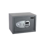 Serrure à combinaison électronique digitale de 3 jusqu’à 8 chiffres possibles. Montage rentré de la porte contre l’arrachement, ouverture à 90°. Fonctionne avec 4 piles 1,5 V. Peut être fixé sur le mur ou sur le sol. Possibilité d’ouverture d’urgence par clé spéciale en cas de perte du code.