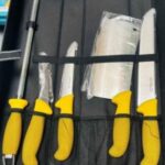 مجموعة من 3 سكاكين للمطبخ من الفولاذ المقاوم للصدأ+ ساطور+ أداة شحذ + حقيبة صغيرة