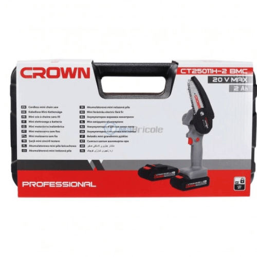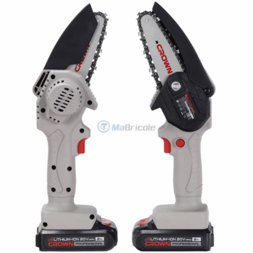 La mini tronçonneuse sans fil CROWN est un outil électrique compact et pratique conçu pour couper des branches, du bois de chauffage, travailler le bois et d’autres tâches pratiques. Alimentée par une batterie rechargeable 20V max 2Ah, cette scie offre une liberté de mouvement sans les limitations d’un cordon électrique traditionnel. Longueur de coupe : 90 mm.