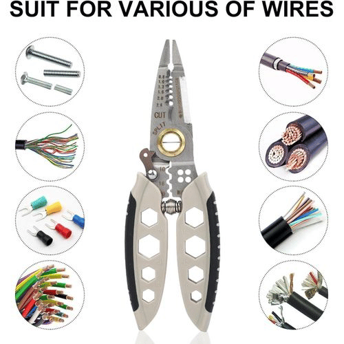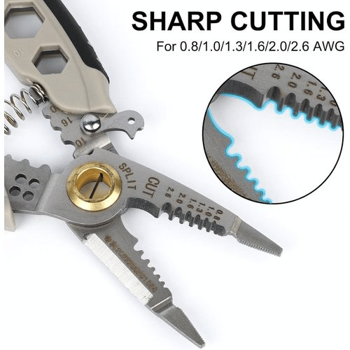 【Outil multifonctionnel pratique】Répond à une variété d’exigences de fonctionnement électrique telles que la coupe de fil, le dénudage, le sertissage, la torsion, le fendage, le serrage et l’épissure. Il n’est pas nécessaire de changer fréquemment de pince pendant l’utilisation, ce qui améliore l’efficacité du travail. Convient aux fils 0,8/1,0/1,3/1,6/2,0/2,6.