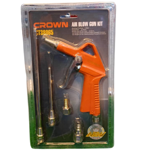 Le Pistolet soufflette CROWN est un outil polyvalent conçu pour une variété d’applications de soufflage avec l’air comprimé, Cela en fait un outil idéal pour le nettoyage, le séchage, le dépoussiérage, ou d’autres applications nécessitant de l’air comprimé., Le kit contient : 2 Raccords rapides 1/4″ avec diamètre de sortie de 2,0 et 3,2mm. 2 buses de longueur : 11cm et 21cm. Le pistolet soufflette fonctionne avec une pression de 2 et 6bars.