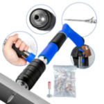 بندقية تثبيت المسامير اليدوية POWERBLU YAE1080 هي الأداة المثالية لكل الحرفيين وأصحاب الأشغال المنزلية اللي يبحثو على السرعة والدقة في الخدمة. تجيك مع 50 مسمار (Rivets) جاهزين للاستعمال، وتخدم بدون كهرباء، يعني تقدر تستعملها في أي مكان بكل راحة.