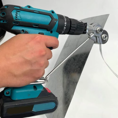 رأس مقص كهربائي للصفائح المعدنية يركب على مثقاب كهربائي ويستخدم لقص وتشكيل الصفائح المعدنية بدقة وسرعة يفيد في الاعمال الحرفية والميكانيكية خاصة في تقطيع الحديدوالألمنيوماو الصفائح المعدنية الرقيقة