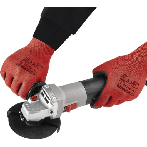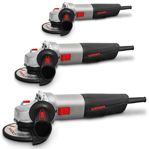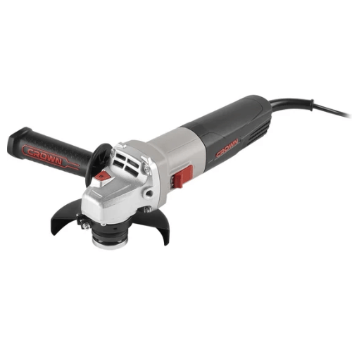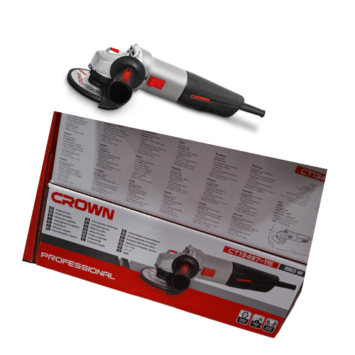 description: Ce produit est une meuleuse angulaire de la marque CROWN, modèle CT13497-115, avec une puissance de 860 W. Elle est conçue pour des travaux de coupe, de ponçage et de meulage sur différents matériaux comme le métal, la pierre et le béton.