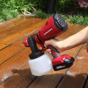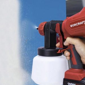 Pistolet De Peinture Sans Fil 20v WORCRAFT, est idéal pour peintre les clôtures, les murs extérieurs, les portes de garage et les dépendances. Trois modèles de pulvérisation disponibles, horizontal, vertical et rond, pour vous offrir la meilleure couverture, tout en minimisant la sur pulvérisation.