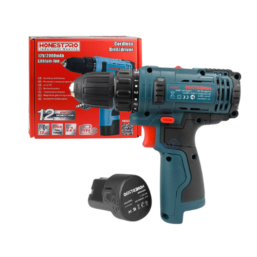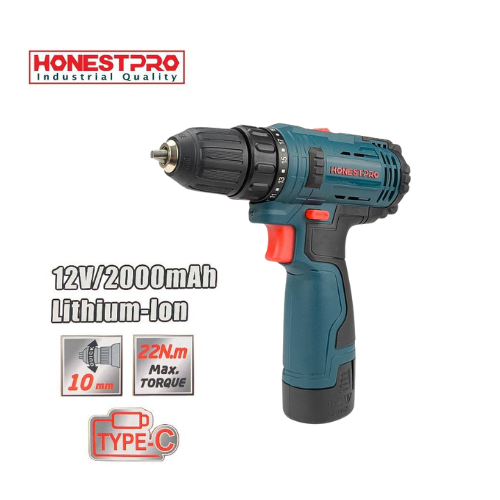 مفك براغي لاسلكي HONESTPRO YAE6152 مفك براغي صغير و خفيف، يخدم بالبطارية 12V 2Ah، يصلح للفيصاغ و الحفر الخفيف. فيه شحن Type-C سريع و سهل. مناسب للهواة و للمحترفين اللي حابين أداة عملية و مريحة